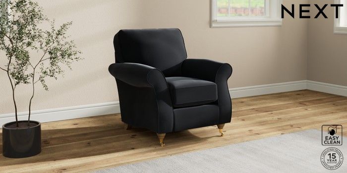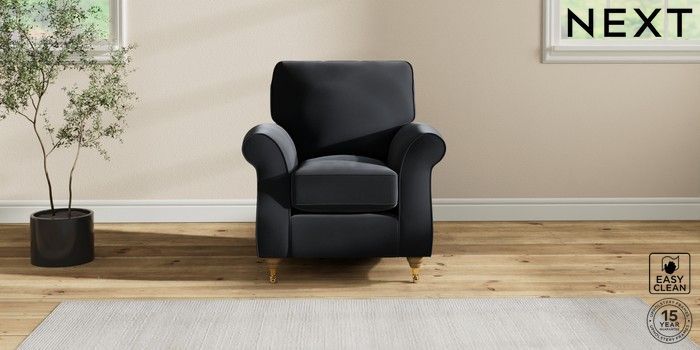 7.2.10 Ashford Small Armchair Plush Velvet Easy Clean Charcoal Grey Castor - Light | Made Click here to use our website with more accessibility support, for example screen readers
