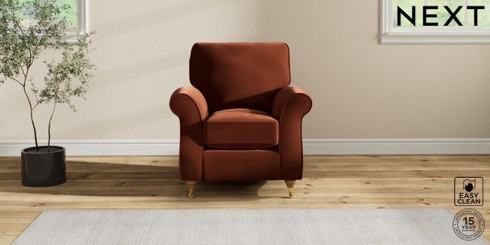 7.2.10 Ashford Small Armchair Plush Velvet Easy Clean Ginger Orange Castor - Light | Made Click here to use our website with more accessibility support, for example screen readers