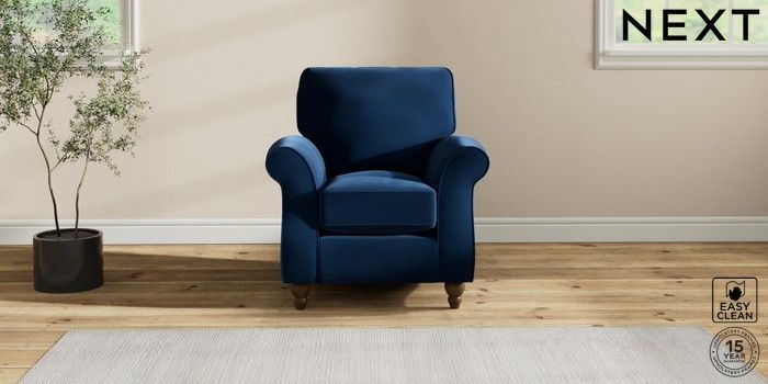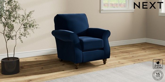 7.2.10 Ashford Small Armchair Plush Velvet Easy Clean Navy Blue Low Turned - Mid | Made Click here to use our website with more accessibility support, for example screen readers