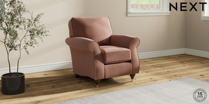 7.2.10 Ashford Small Armchair Relaxed Linen Look Light Rust Brown Modern Turned Metal Cap - Mid | Made Click here to use our website with more accessibility support, for example screen readers
