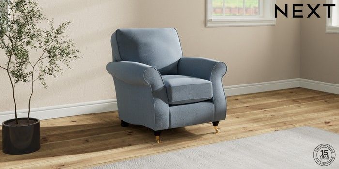 7.2.10 Ashford Small Armchair Relaxed Linen Look Mid Blue Castor - Dark | Made Click here to use our website with more accessibility support, for example screen readers