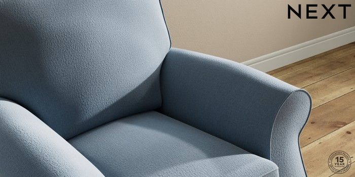 7.2.10 Ashford Small Armchair Relaxed Linen Look Mid Blue Low Turned - Dark | Made Click here to use our website with more accessibility support, for example screen readers