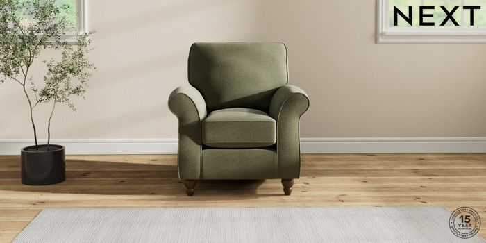 7.2.10 Ashford Small Armchair Ripple Chenille Mid Moss Green Low Turned - Mid | Made Click here to use our website with more accessibility support, for example screen readers