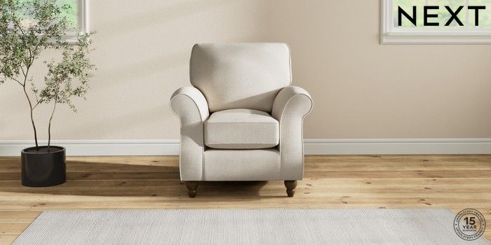 7.2.10 Ashford Small Armchair Tweedy Chenille Oyster Low Turned - Mid | Made Click here to use our website with more accessibility support, for example screen readers