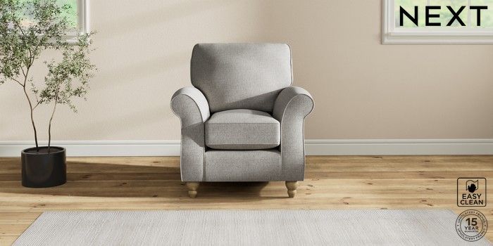 7.2.10 Ashford Small Armchair Woven Chenille Easy Clean Light Grey Low Turned - Light | Made Click here to use our website with more accessibility support, for example screen readers