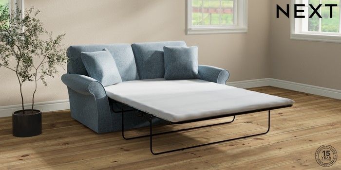 7.2.10 Ashford Sofa Bed Plush Chenille Light Blue Flat Bun - Light | Made Click here to use our website with more accessibility support, for example screen readers