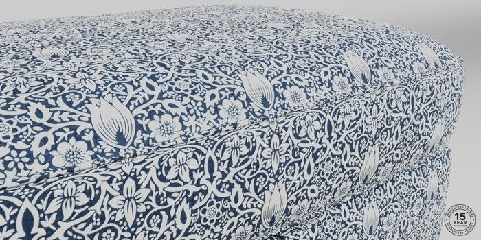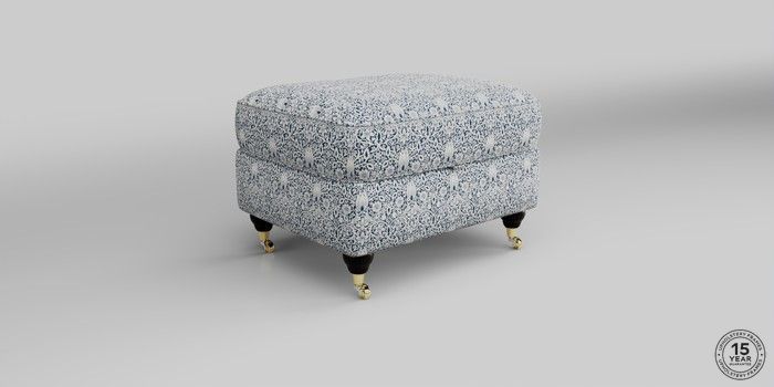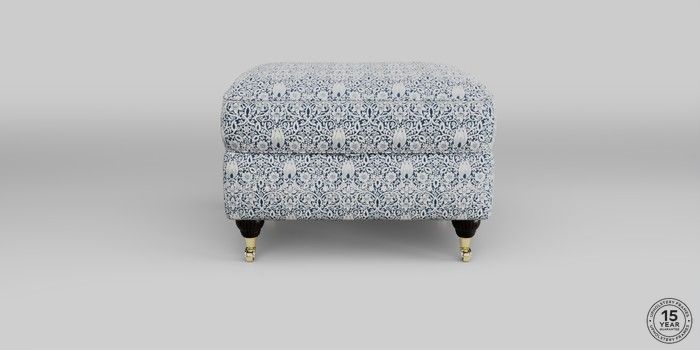 7.2.10 Ashford Storage Footstool Borage by Morris and Co Indigo Blue Castor - Dark | Made Click here to use our website with more accessibility support, for example screen readers