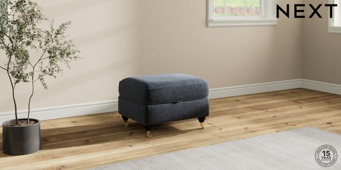 7.2.10 Ashford Storage Footstool Boucle Chenille Dark Slate Blue Castor - Dark | Made Click here to use our website with more accessibility support, for example screen readers