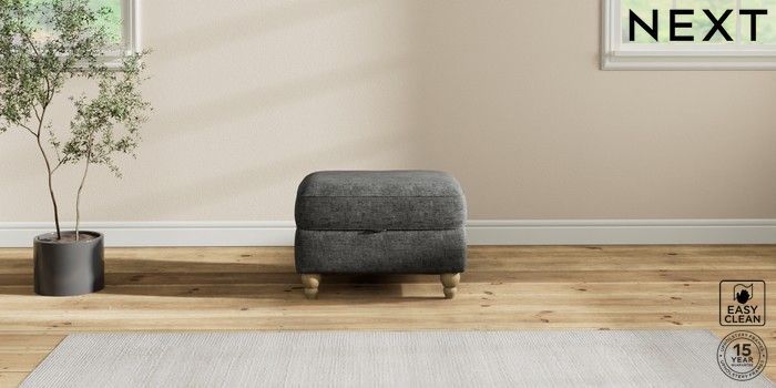 7.2.10 Ashford Storage Footstool Boucle Weave Easy Clean Charcoal Grey Low Turned - Light | Made Click here to use our website with more accessibility support, for example screen readers