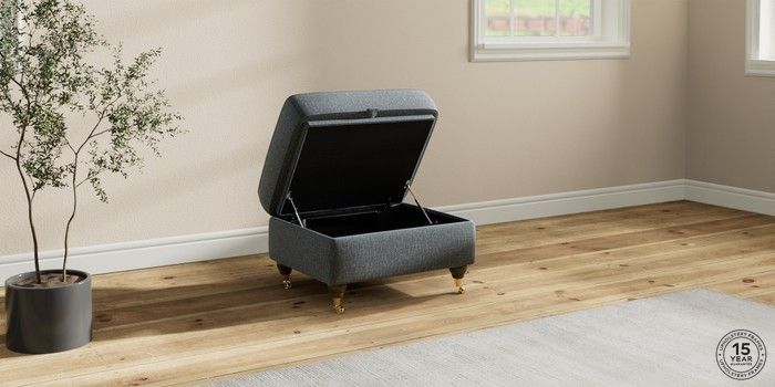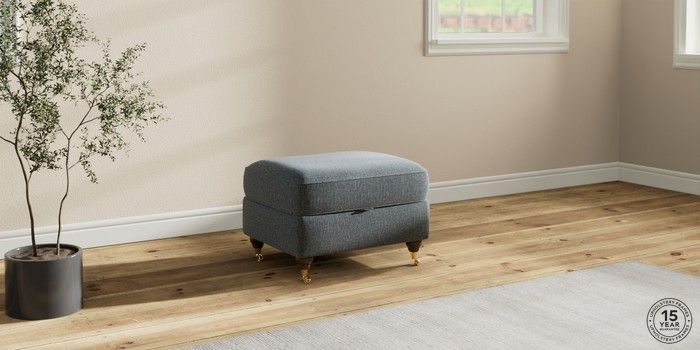 7.2.10 Ashford Storage Footstool Burford by Morris and Co Indigo Blue Castor - Mid | Made Click here to use our website with more accessibility support, for example screen readers