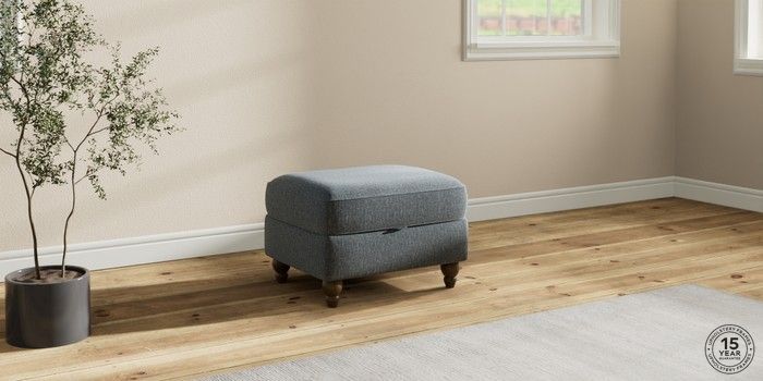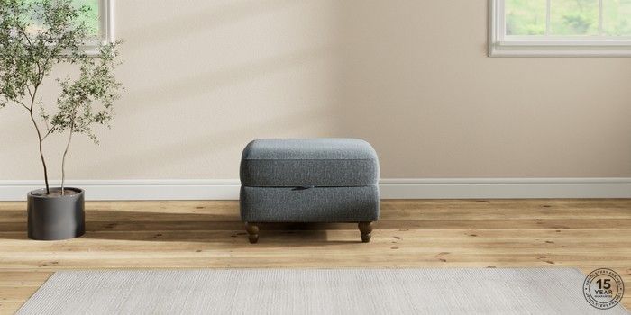 7.2.10 Ashford Storage Footstool Burford by Morris and Co Indigo Blue Low Turned - Mid | Made Click here to use our website with more accessibility support, for example screen readers