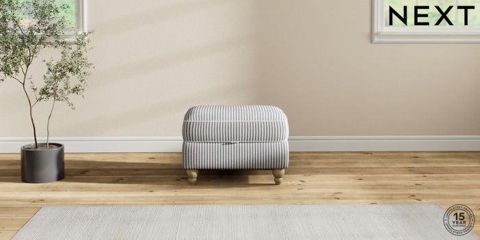 7.2.10 Ashford Storage Footstool Chenille Stripe Slate Blue Low Turned - Light | Made Click here to use our website with more accessibility support, for example screen readers