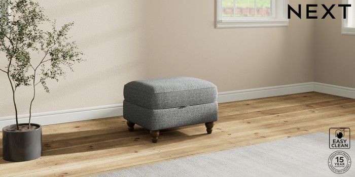 7.2.10 Ashford Storage Footstool Chunky Boucle Easy Clean Mid Grey Low Turned - Mid | Made Click here to use our website with more accessibility support, for example screen readers