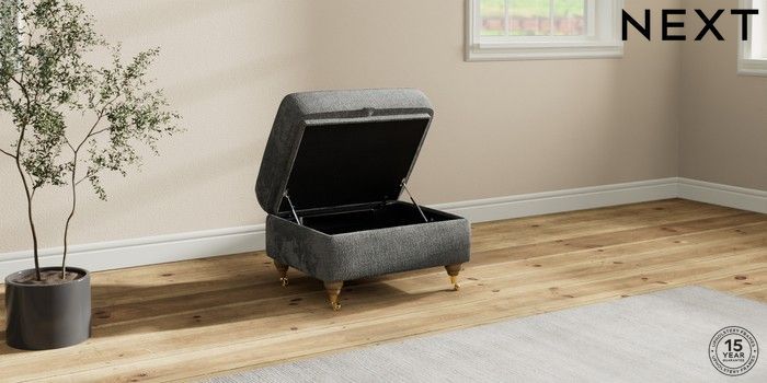 7.2.10 Ashford Storage Footstool Chunky Chenille Dark Grey Castor - Light | Made Click here to use our website with more accessibility support, for example screen readers
