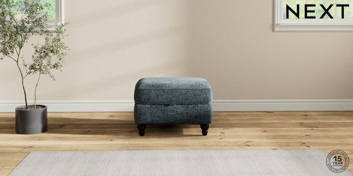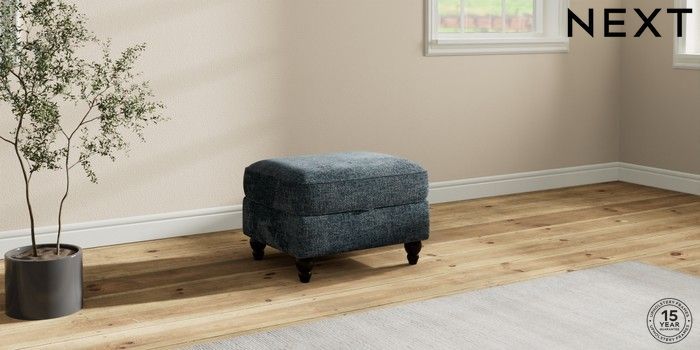 7.2.10 Ashford Storage Footstool Chunky Chenille Dark Navy Blue Low Turned - Dark | Made Click here to use our website with more accessibility support, for example screen readers