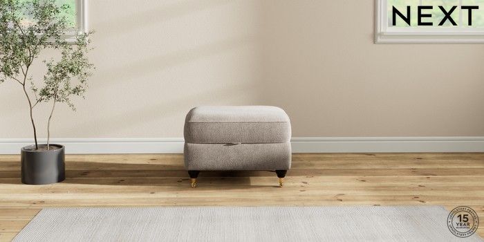 7.2.10 Ashford Storage Footstool Chunky Chenille Light Dove Castor - Dark | Made Click here to use our website with more accessibility support, for example screen readers