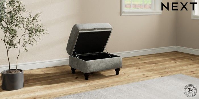 7.2.10 Ashford Storage Footstool Chunky Chenille Light Grey Low Turned - Dark | Made Click here to use our website with more accessibility support, for example screen readers