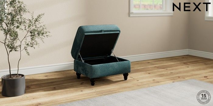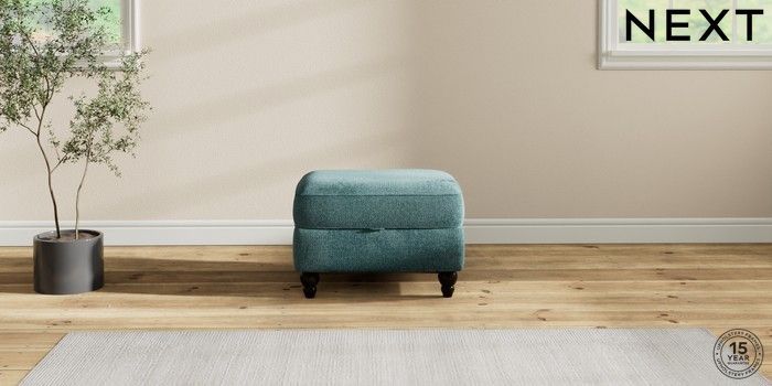 7.2.10 Ashford Storage Footstool Chunky Chenille Mid Teal Green Low Turned - Dark | Made Click here to use our website with more accessibility support, for example screen readers
