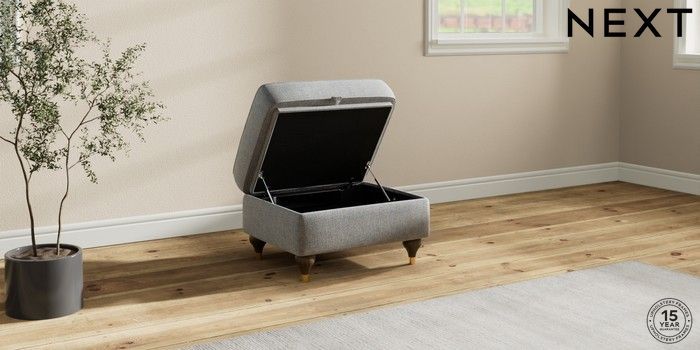 7.2.10 Ashford Storage Footstool Chunky Marl Mid Grey Modern Turned Metal Cap - Mid | Made Click here to use our website with more accessibility support, for example screen readers