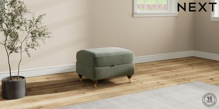 7.2.10 Ashford Storage Footstool Chunky Texture Mid Forest Green Castor - Mid | Made Click here to use our website with more accessibility support, for example screen readers