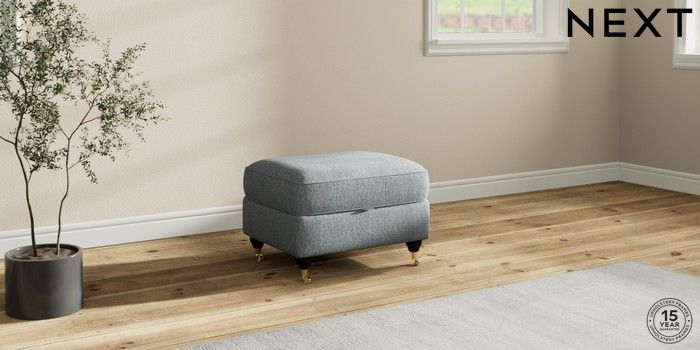 7.2.10 Ashford Storage Footstool Chunky Weave Mid Blue Castor - Dark | Made Click here to use our website with more accessibility support, for example screen readers