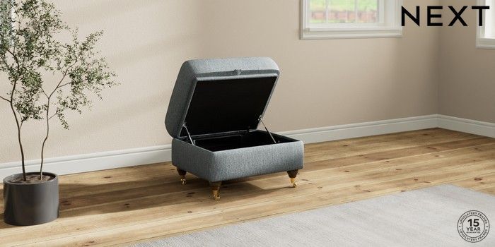 7.2.10 Ashford Storage Footstool Chunky Weave Mid Blue Castor - Mid | Made Click here to use our website with more accessibility support, for example screen readers