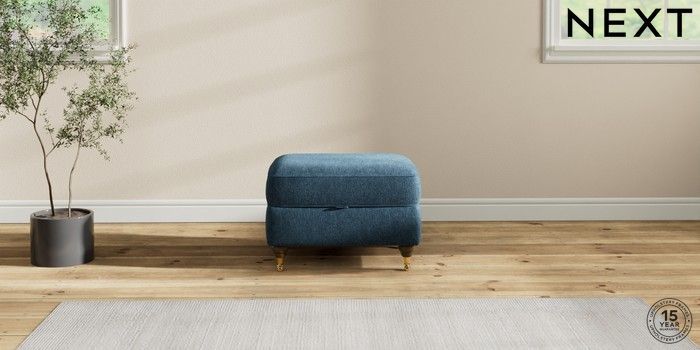 7.2.10 Ashford Storage Footstool Cotswold Chenille Dark Blue Castor - Mid | Made Click here to use our website with more accessibility support, for example screen readers