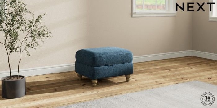7.2.10 Ashford Storage Footstool Cotswold Chenille Dark Blue Low Turned - Light | Made Click here to use our website with more accessibility support, for example screen readers
