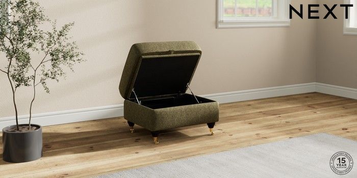 7.2.10 Ashford Storage Footstool Cotswold Chenille Dark Green Castor - Dark | Made Click here to use our website with more accessibility support, for example screen readers