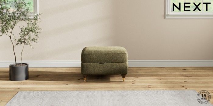 7.2.10 Ashford Storage Footstool Cotswold Chenille Dark Green Castor - Mid | Made Click here to use our website with more accessibility support, for example screen readers
