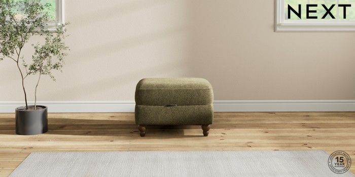 7.2.10 Ashford Storage Footstool Cotswold Chenille Dark Green Low Turned - Mid | Made Click here to use our website with more accessibility support, for example screen readers