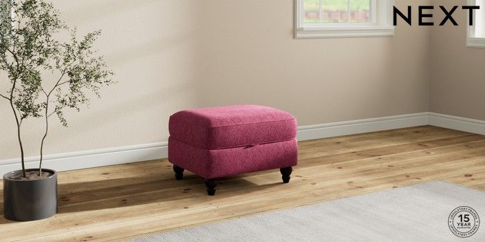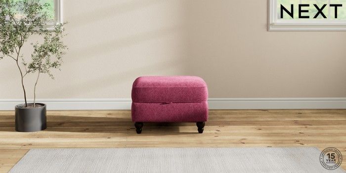 7.2.10 Ashford Storage Footstool Cotswold Chenille Dark Raspberry Pink Low Turned - Dark | Made Click here to use our website with more accessibility support, for example screen readers