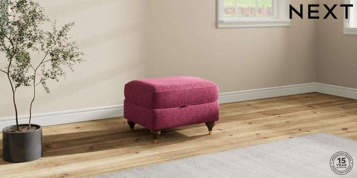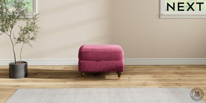7.2.10 Ashford Storage Footstool Cotswold Chenille Dark Raspberry Pink Modern Turned Metal Cap - Mid | Made Click here to use our website with more accessibility support, for example screen readers