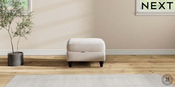 7.2.10 Ashford Storage Footstool Cotswold Chenille Oyster Low Turned - Dark | Made Click here to use our website with more accessibility support, for example screen readers