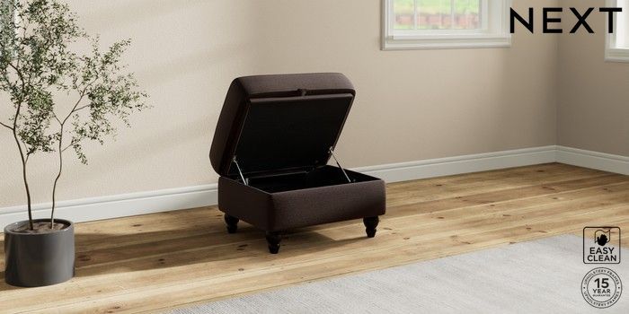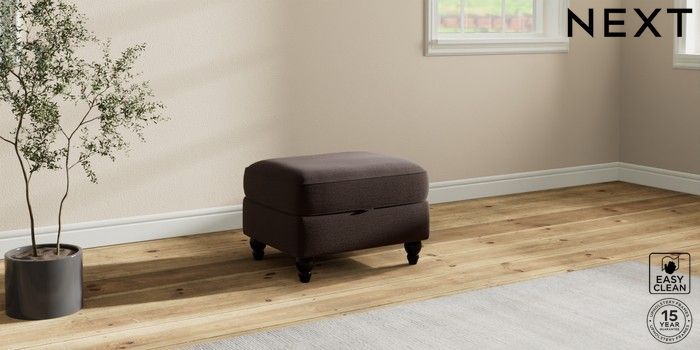 7.2.10 Ashford Storage Footstool Fine Chenille Easy Clean Chocolate Brown Low Turned - Dark | Made Click here to use our website with more accessibility support, for example screen readers