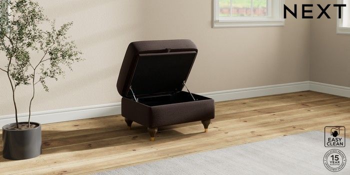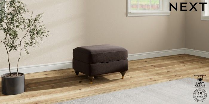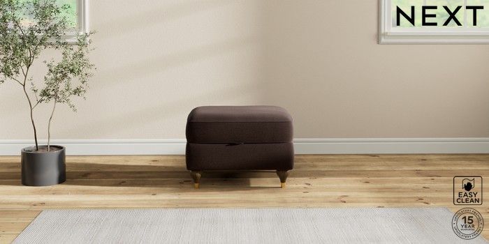 7.2.10 Ashford Storage Footstool Fine Chenille Easy Clean Chocolate Brown Modern Turned Metal Cap - Mid | Made Click here to use our website with more accessibility support, for example screen readers