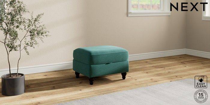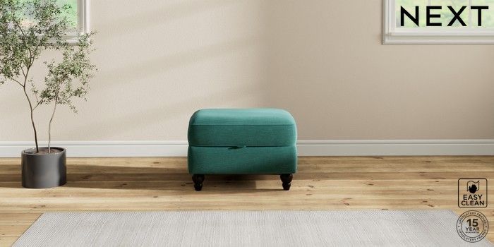 7.2.10 Ashford Storage Footstool Fine Chenille Easy Clean Dark Juniper Green Low Turned - Dark | Made Click here to use our website with more accessibility support, for example screen readers