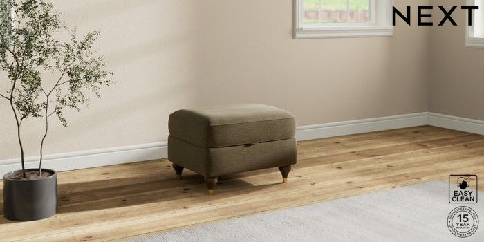 7.2.10 Ashford Storage Footstool Fine Chenille Easy Clean Dark Moss Green Modern Turned Metal Cap - Mid | Made Click here to use our website with more accessibility support, for example screen readers