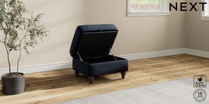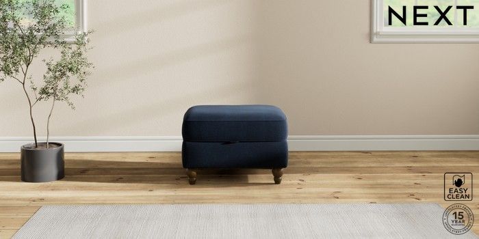 7.2.10 Ashford Storage Footstool Fine Chenille Easy Clean Dark Navy Blue Low Turned - Mid | Made Click here to use our website with more accessibility support, for example screen readers