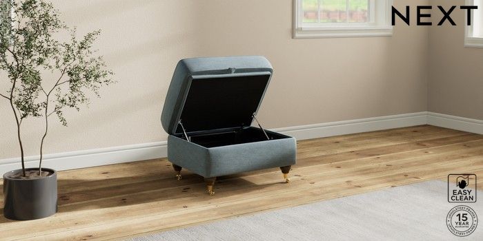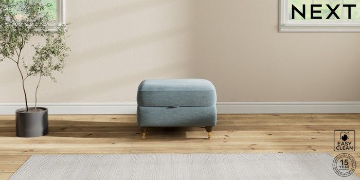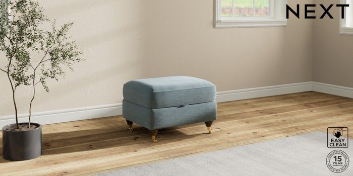 7.2.10 Ashford Storage Footstool Fine Chenille Easy Clean Mid Blue Castor - Mid | Made Click here to use our website with more accessibility support, for example screen readers
