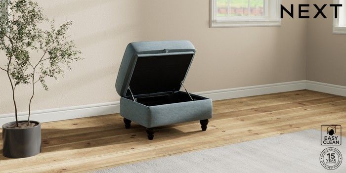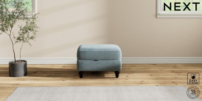 7.2.10 Ashford Storage Footstool Fine Chenille Easy Clean Mid Blue Low Turned - Dark | Made Click here to use our website with more accessibility support, for example screen readers