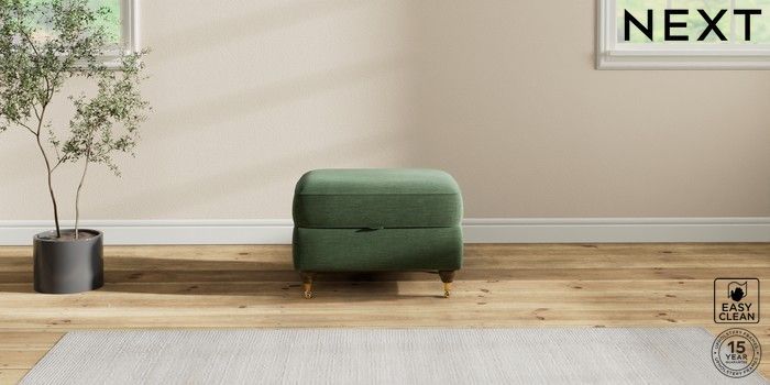 7.2.10 Ashford Storage Footstool Fine Chenille Easy Clean Mid Khaki Green Castor - Mid | Made Click here to use our website with more accessibility support, for example screen readers