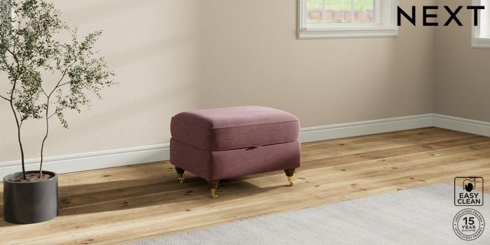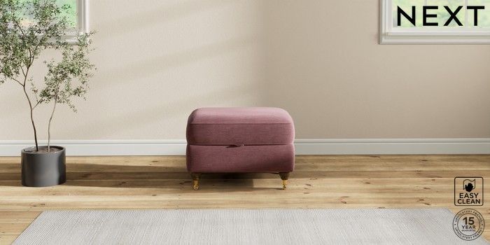 7.2.10 Ashford Storage Footstool Fine Chenille Easy Clean Mid Mulberry Purple Castor - Mid | Made Click here to use our website with more accessibility support, for example screen readers