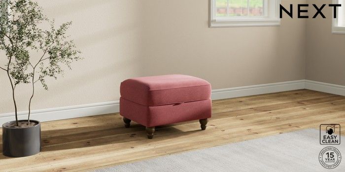 7.2.10 Ashford Storage Footstool Fine Chenille Easy Clean Mid Pink Low Turned - Mid | Made Click here to use our website with more accessibility support, for example screen readers
