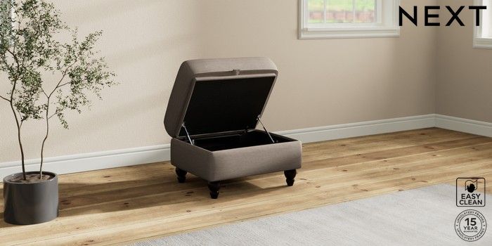 7.2.10 Ashford Storage Footstool Fine Chenille Easy Clean Mid Taupe Brown Low Turned - Dark | Made Click here to use our website with more accessibility support, for example screen readers