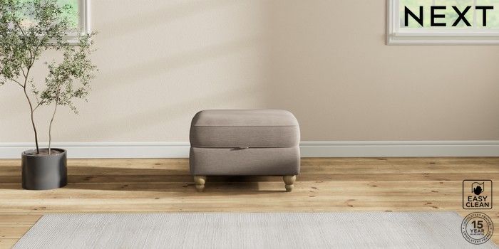 7.2.10 Ashford Storage Footstool Fine Chenille Easy Clean Mid Taupe Brown Low Turned - Light | Made Click here to use our website with more accessibility support, for example screen readers