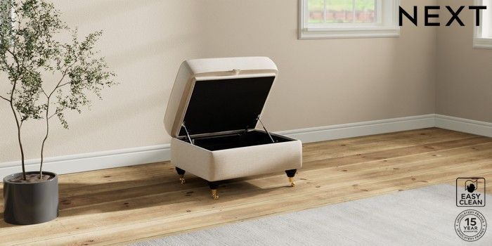 7.2.10 Ashford Storage Footstool Fine Chenille Easy Clean Oyster Castor - Dark | Made Click here to use our website with more accessibility support, for example screen readers