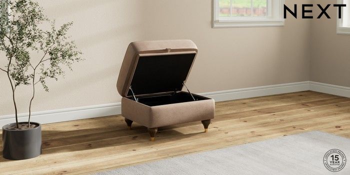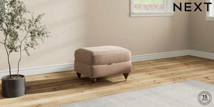 7.2.10 Ashford Storage Footstool Luxe Chenille Mid Natural Modern Turned Metal Cap - Mid | Made Click here to use our website with more accessibility support, for example screen readers