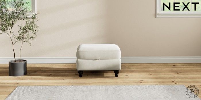 7.2.10 Ashford Storage Footstool Luxe Chenille Oyster Low Turned - Dark | Made Click here to use our website with more accessibility support, for example screen readers