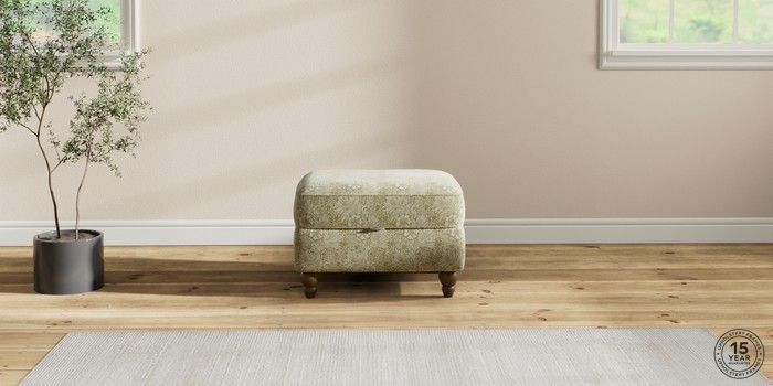 7.2.10 Ashford Storage Footstool Marigold by Morris and Co Olive Green Low Turned - Mid | Made Click here to use our website with more accessibility support, for example screen readers